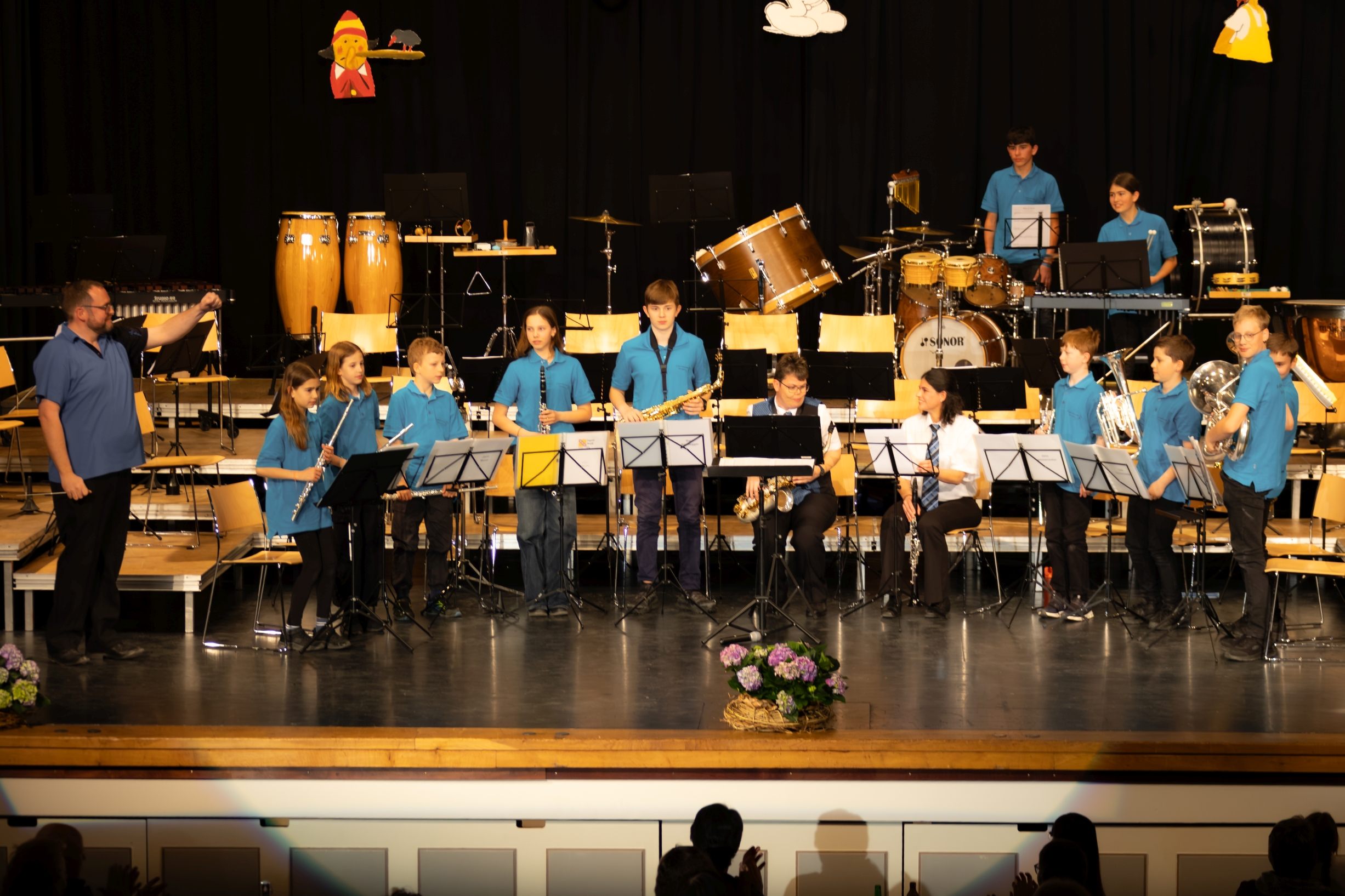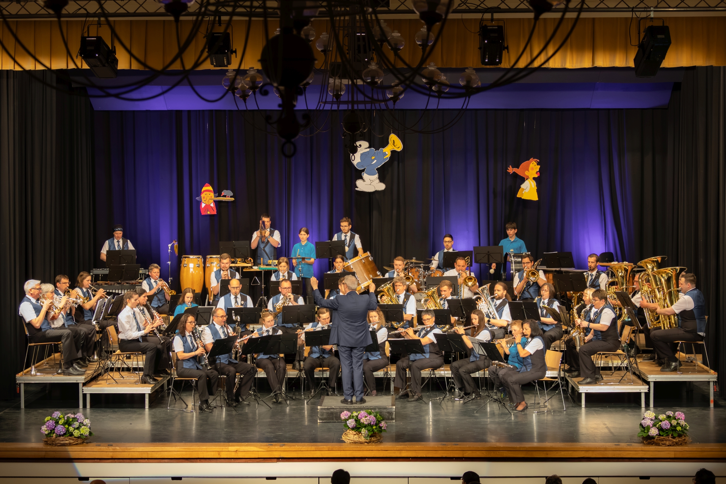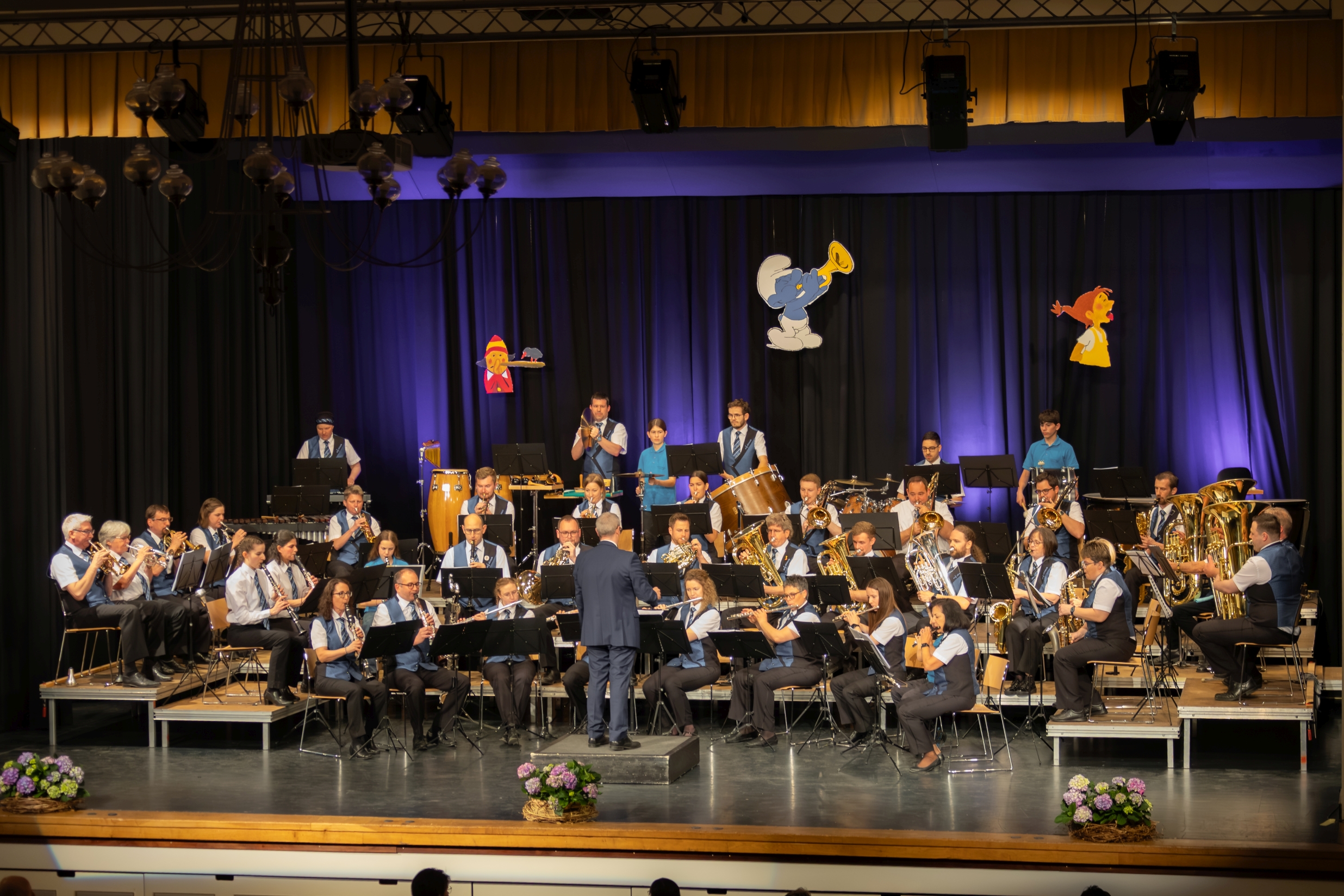 Die Musikgesellschaft Sirnach unter der Leitung von Bruno Uhr eröffnete den Konzertabend mit dem Marsch Flic-Flac. Nach der Begrüssung durch die beiden Co-Präsidenten Christian Weber und Renato Mettler weckten die Musikantinnen und Musikanten mit den Stücken Trio Eugster-Hits und Speedy Gonzales die ersten Kindheitserinnerungen. Moderiert wurde der Abend von Marco Cincera. In diesem Konzertteil spielten auch einige Jungbläser aus der Jugendmusik mit. Nach einem kurzen Umbau betrat die Jugendmusik Sirnach/Münchwilen unter der Leitung von Michael Herzog die Bühne. Mit bekannten Melodien zeigten die Jungbläser ihr Können.