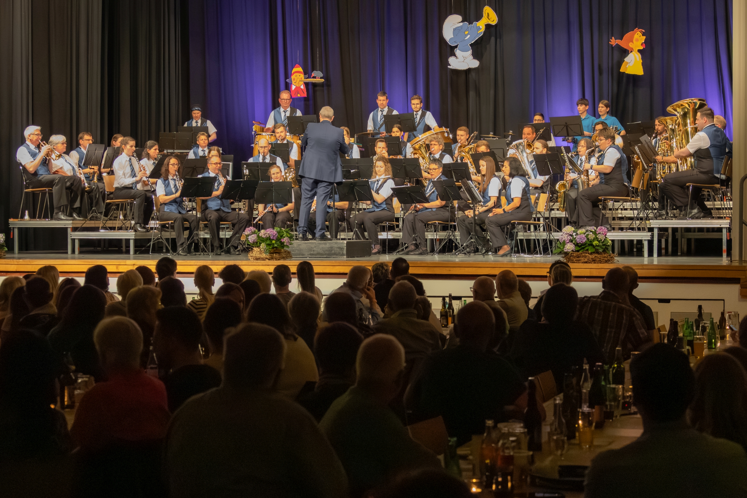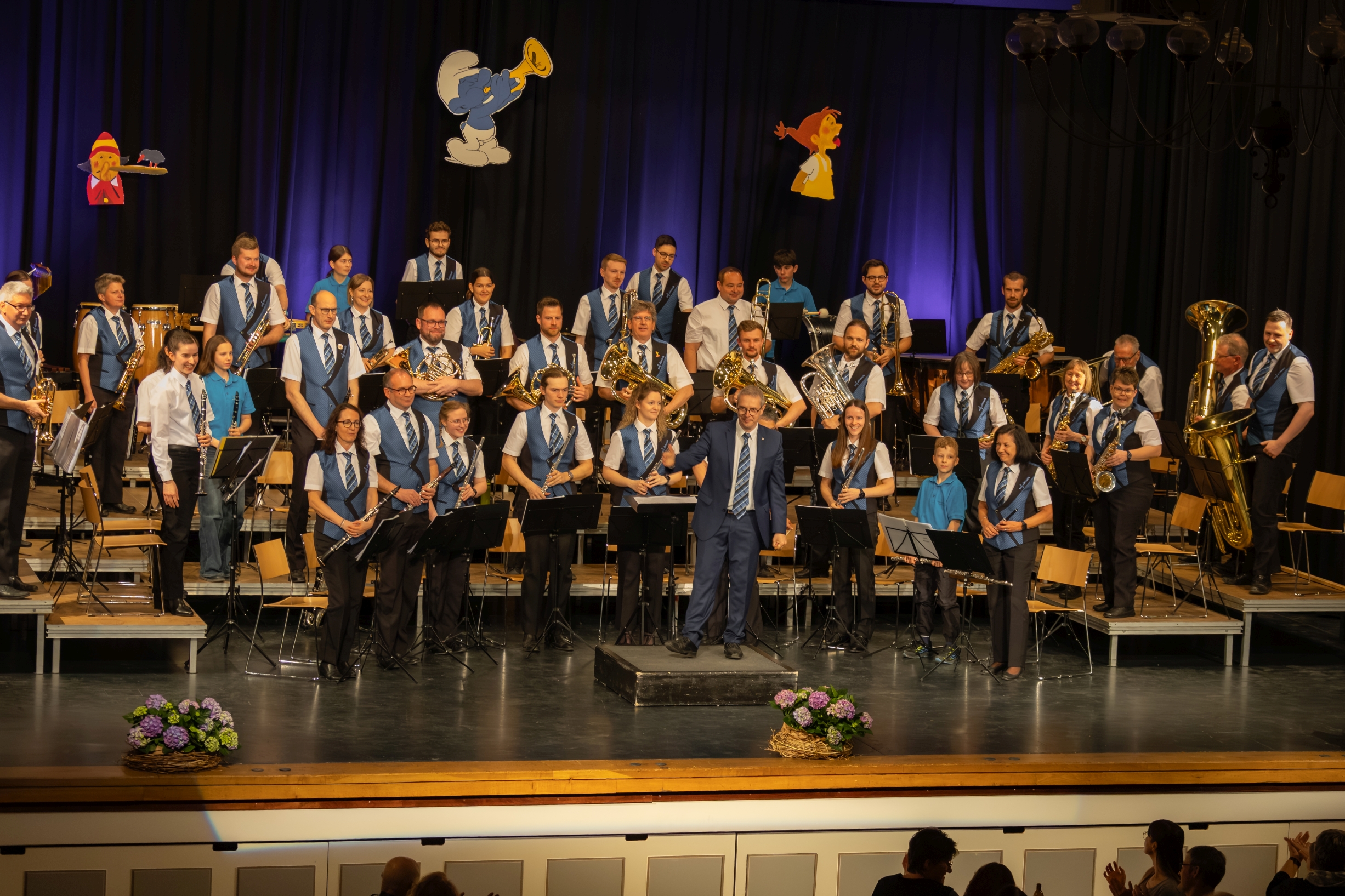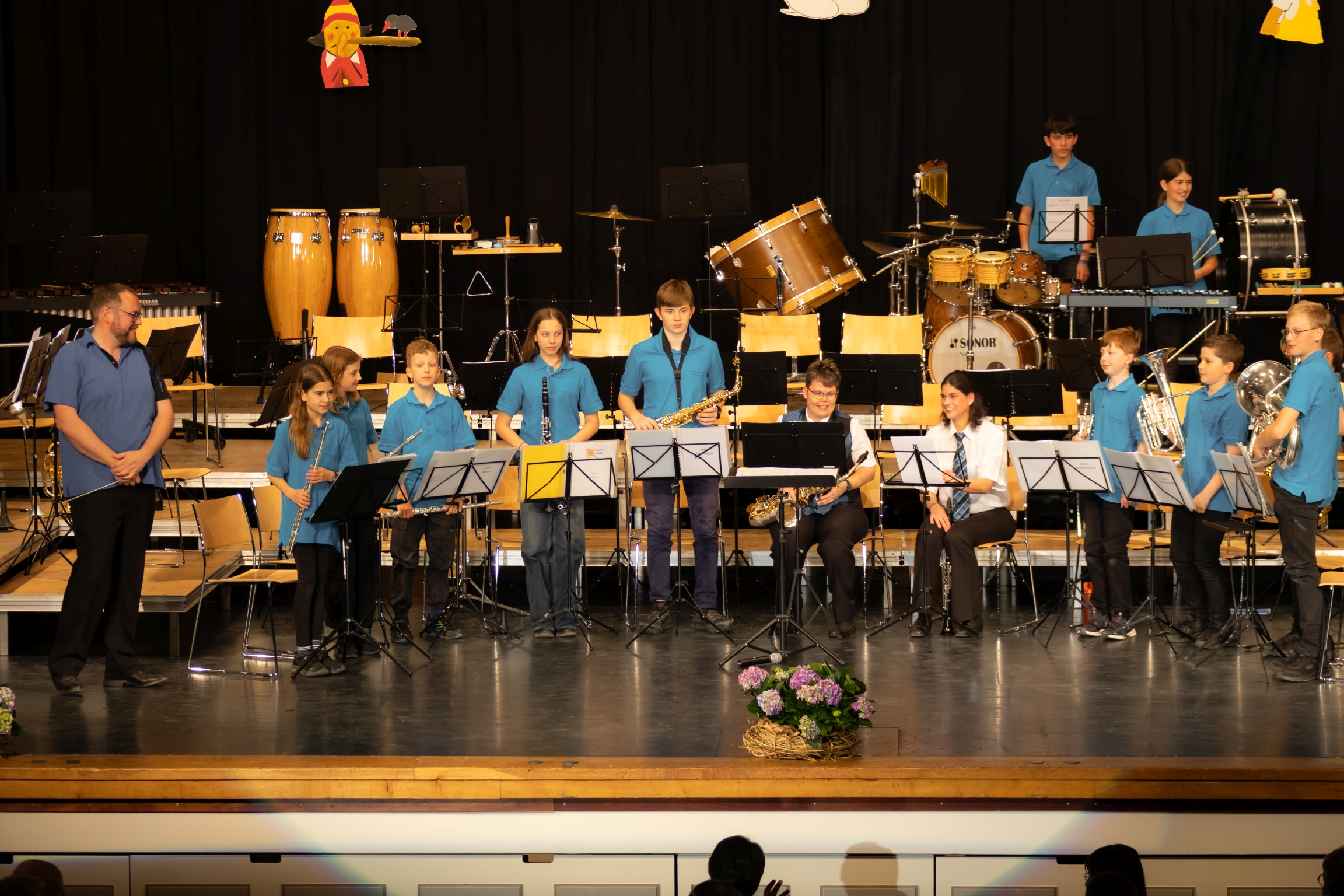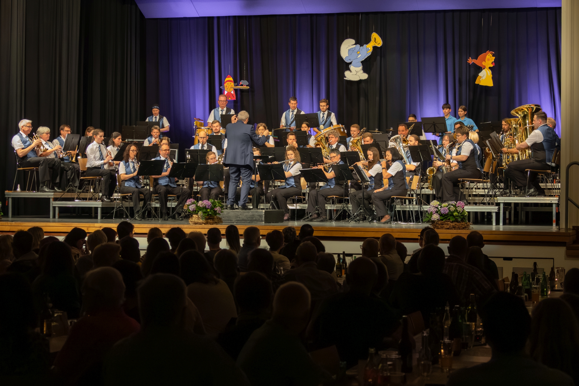 Die Musikgesellschaft Sirnach unter der Leitung von Bruno Uhr eröffnete den Konzertabend mit dem Marsch Flic-Flac. Nach der Begrüssung durch die beiden Co-Präsidenten Christian Weber und Renato Mettler weckten die Musikantinnen und Musikanten mit den Stücken Trio Eugster-Hits und Speedy Gonzales die ersten Kindheitserinnerungen. Moderiert wurde der Abend von Marco Cincera. In diesem Konzertteil spielten auch einige Jungbläser aus der Jugendmusik mit. Nach einem kurzen Umbau betrat die Jugendmusik Sirnach/Münchwilen unter der Leitung von Michael Herzog die Bühne. Mit bekannten Melodien zeigten die Jungbläser ihr Können.