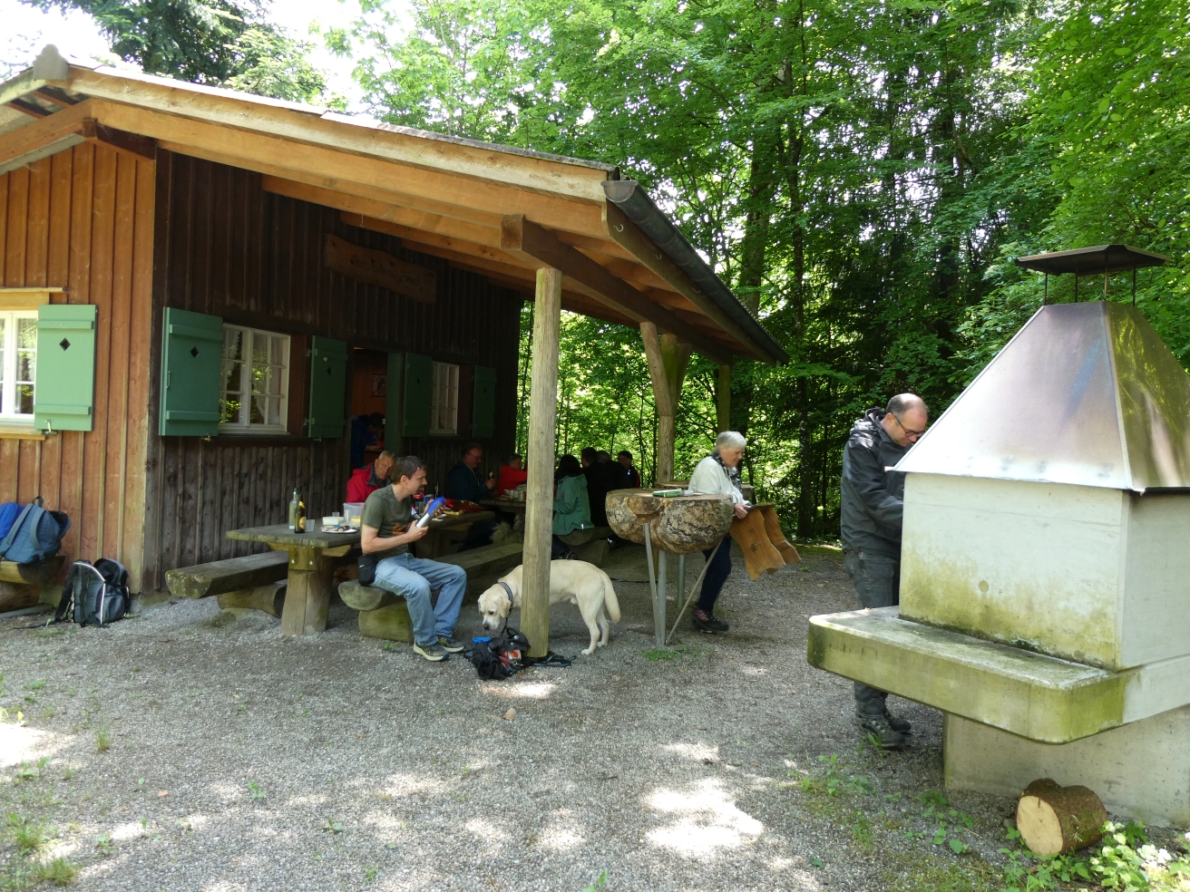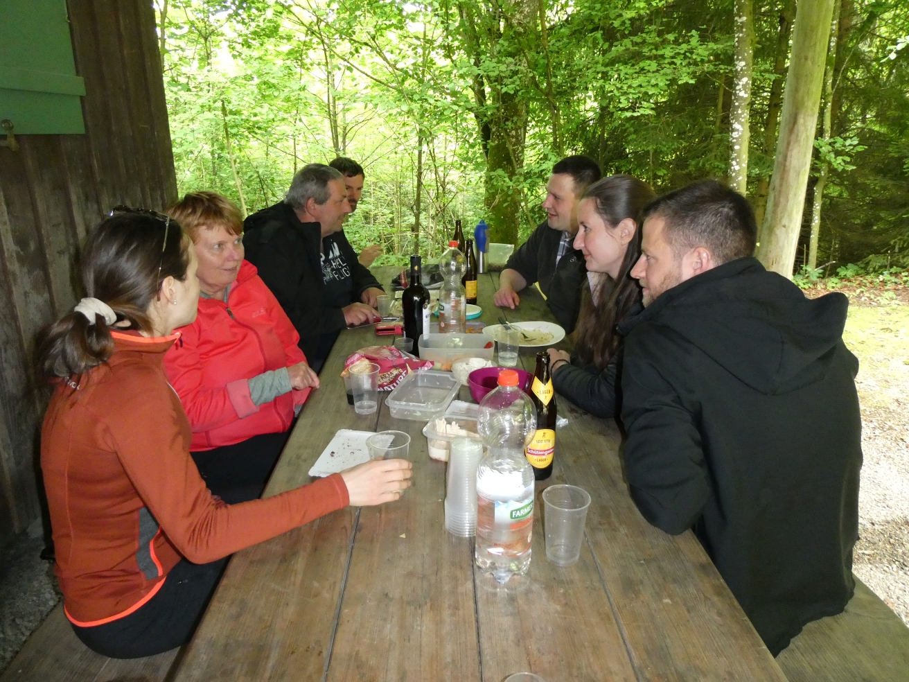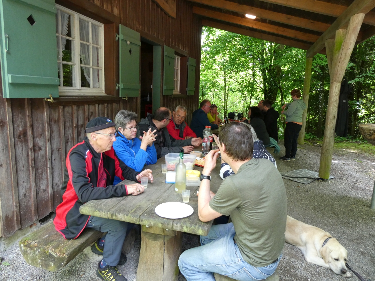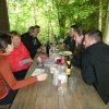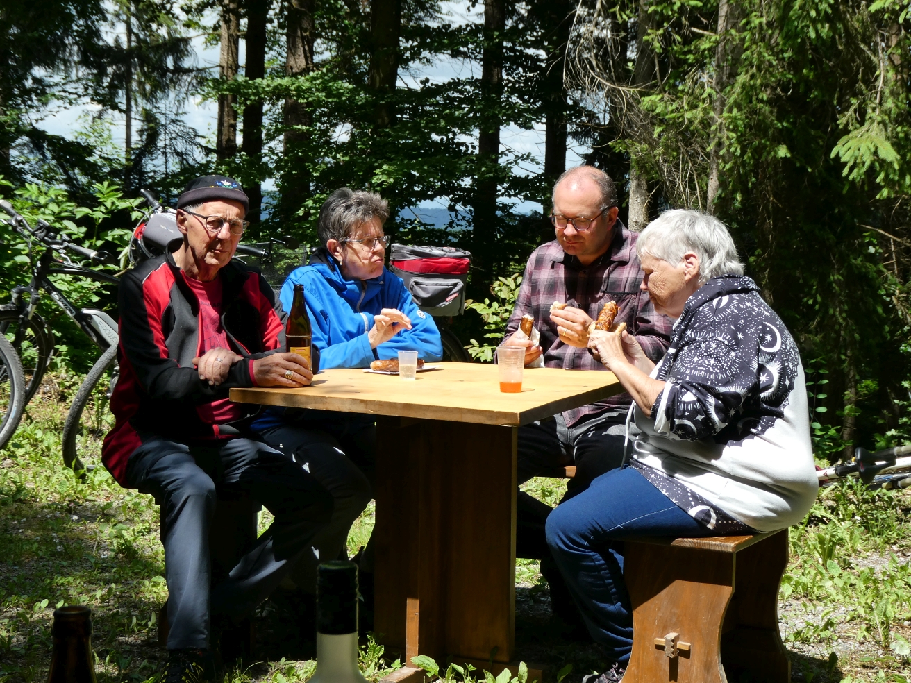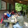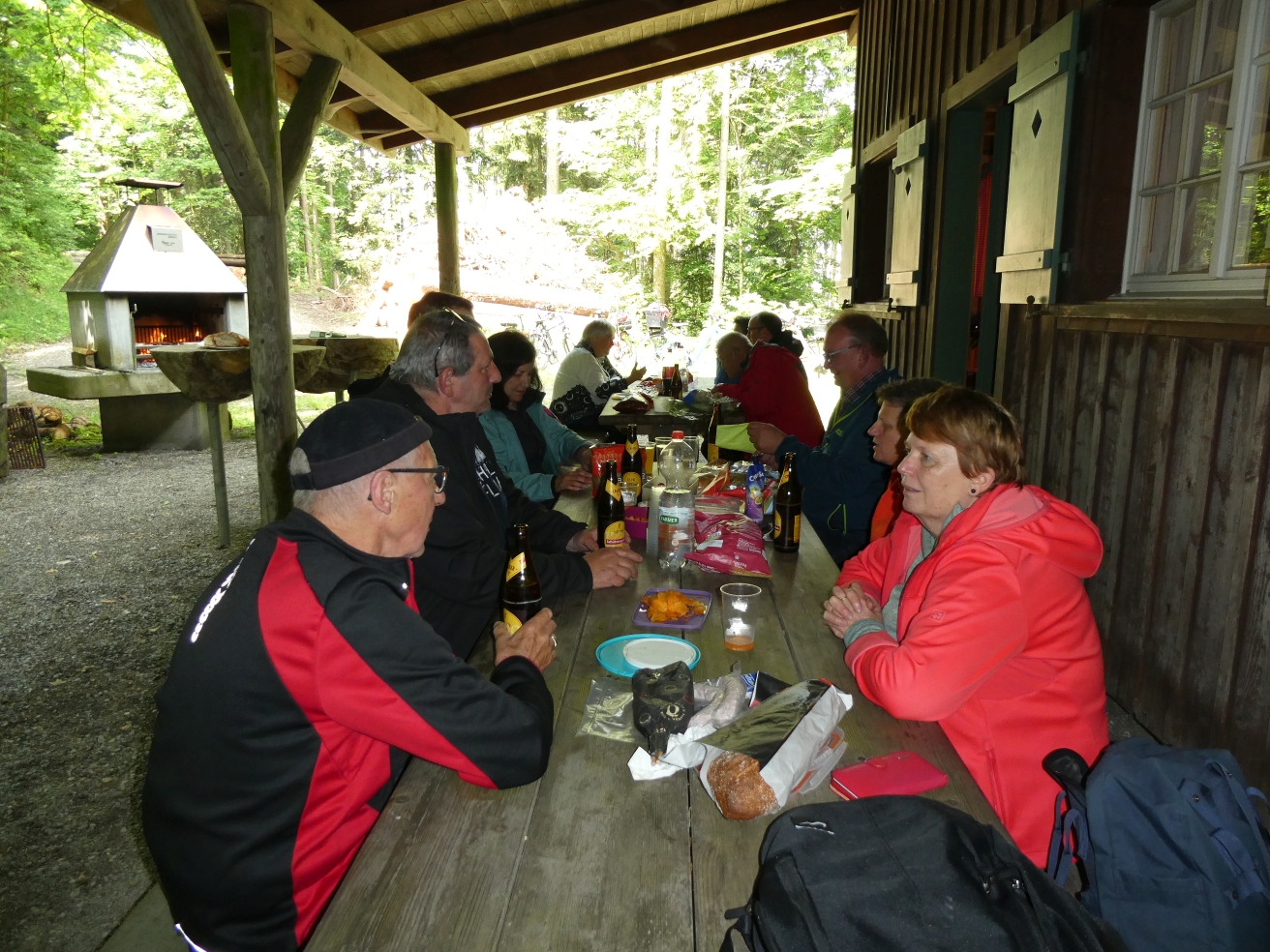Trotz der vielen Wolken am Himmel war das Wetter angenehm. Mit dem Velo oder zu Fuss machten sich alle auf den Weg. Unterwegs wartete Stefan Ruckstuhl mit einem Apéro, bei dem auf einen tollen Tag angestossen wurde. Nach dieser Stärkung führte der Weg weiter zur Sirnacher Bürgerhütte im Wald bei Balterswil. Dort angekommen, wurde sogleich der Grill angeheizt. Man verbrachte ein paar gemütliche Stunden bei leckeren Grilladen. Für Getränke und Desserts war bestens gesorgt. Am Nachmittag schien sogar die Sonne, so dass man noch lange draussen verweilen konnte. Einen herzlichen Dank geht an Stefan Ruckstuhl für die Organisation.