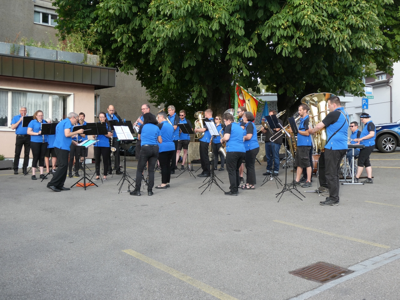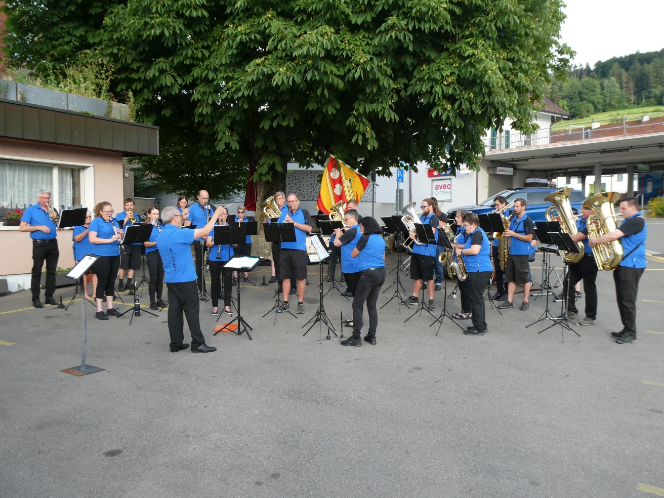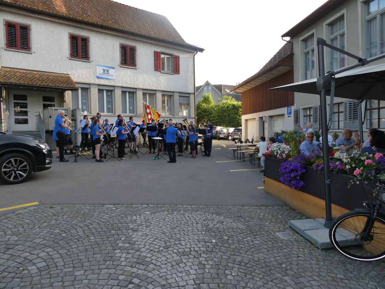 Die Musikantinnen und Musikanten gaben ihr erstes Platzkonzert beim Restaurant Engel. Schnell war die Gartenwirtschaft bis auf den letzten Platz besetzt. Gespielt wurde ein vielseitiges Konzertprogramm, das beim Publikum sehr gut ankam. Das zweite Platzkonzert fand im WAS in Sirnach statt und sorgte für eine willkommene Abwechslung. Das Programm bereitete den Bewohnerinnen und Bewohner viel Freude. Eine Woche später spielte die Musikgesellschaft Sirnach beim Restaurant Bahnhof (Avola) und verwöhnte die Gäste in der vollbesetzten Gartenwirtschaft mit musikalischen Leckerbissen. Das letzte Platzkonzert stellte zugleich das Warm Up dar für das traditionelle Dorffest in Wiezikon dar. Die Musikantinnen und Musikanten gaben noch einmal alles und sorgten für eine tolle Stimmung in der gut gefüllten Chnebelhütte. Bei bekannten Musiktiteln wurde gar gesungen und mitgeklatscht. Auch der Egger Hobbychor gab Ihre Lieder zum Besten. Das Publikum war vom vielseitigen Konzertprogramm sehr begeistert.
