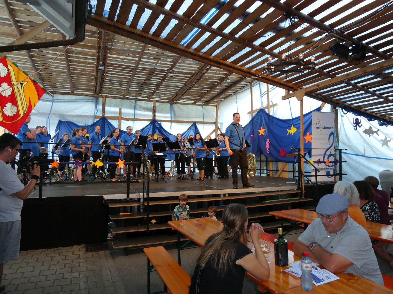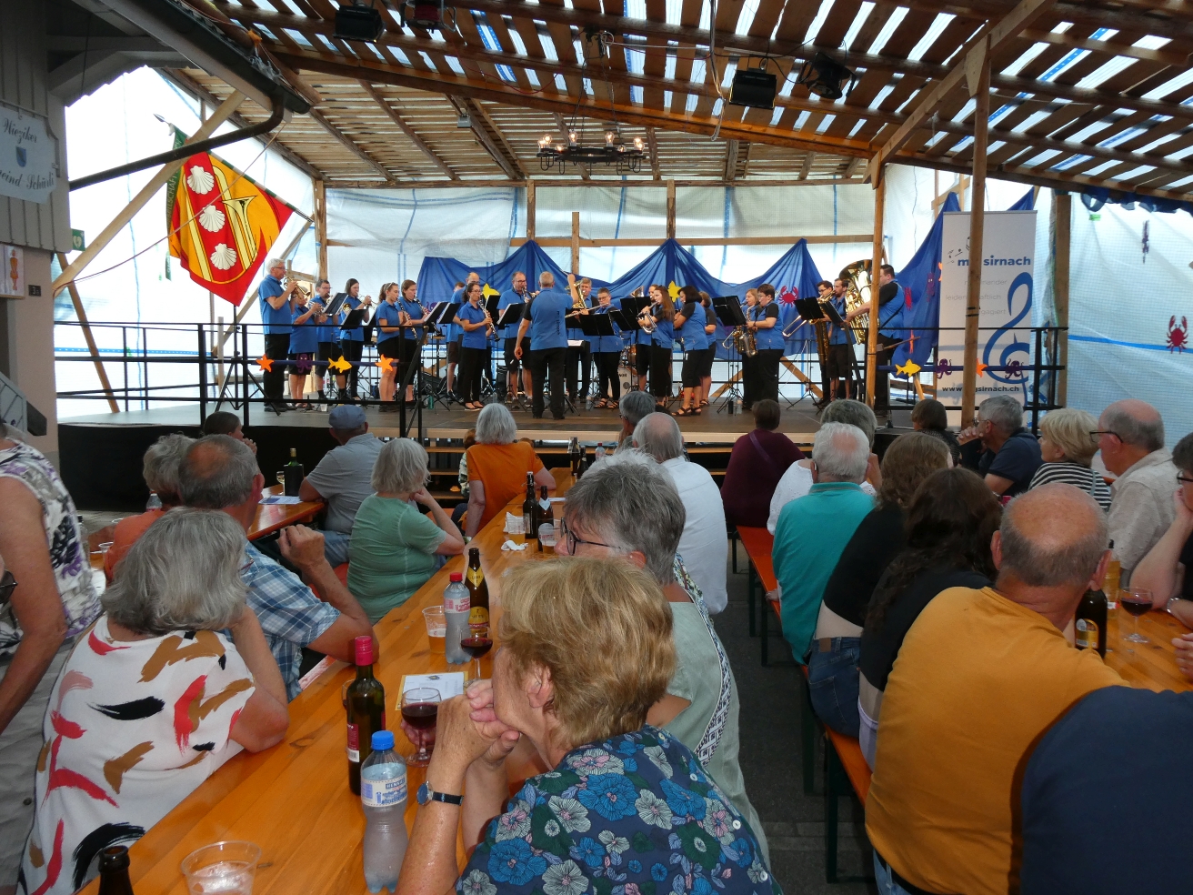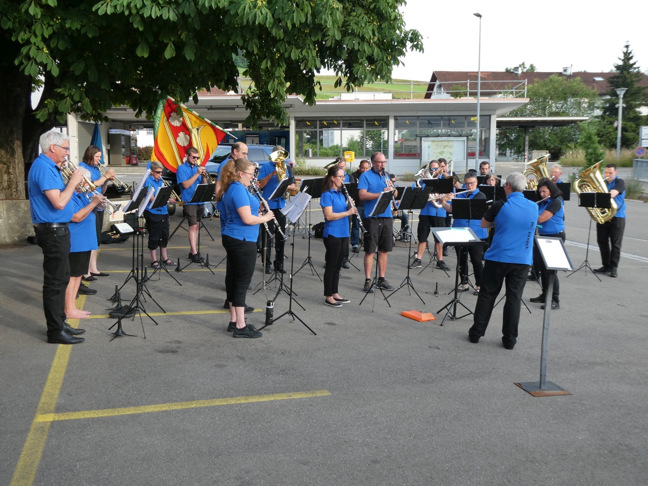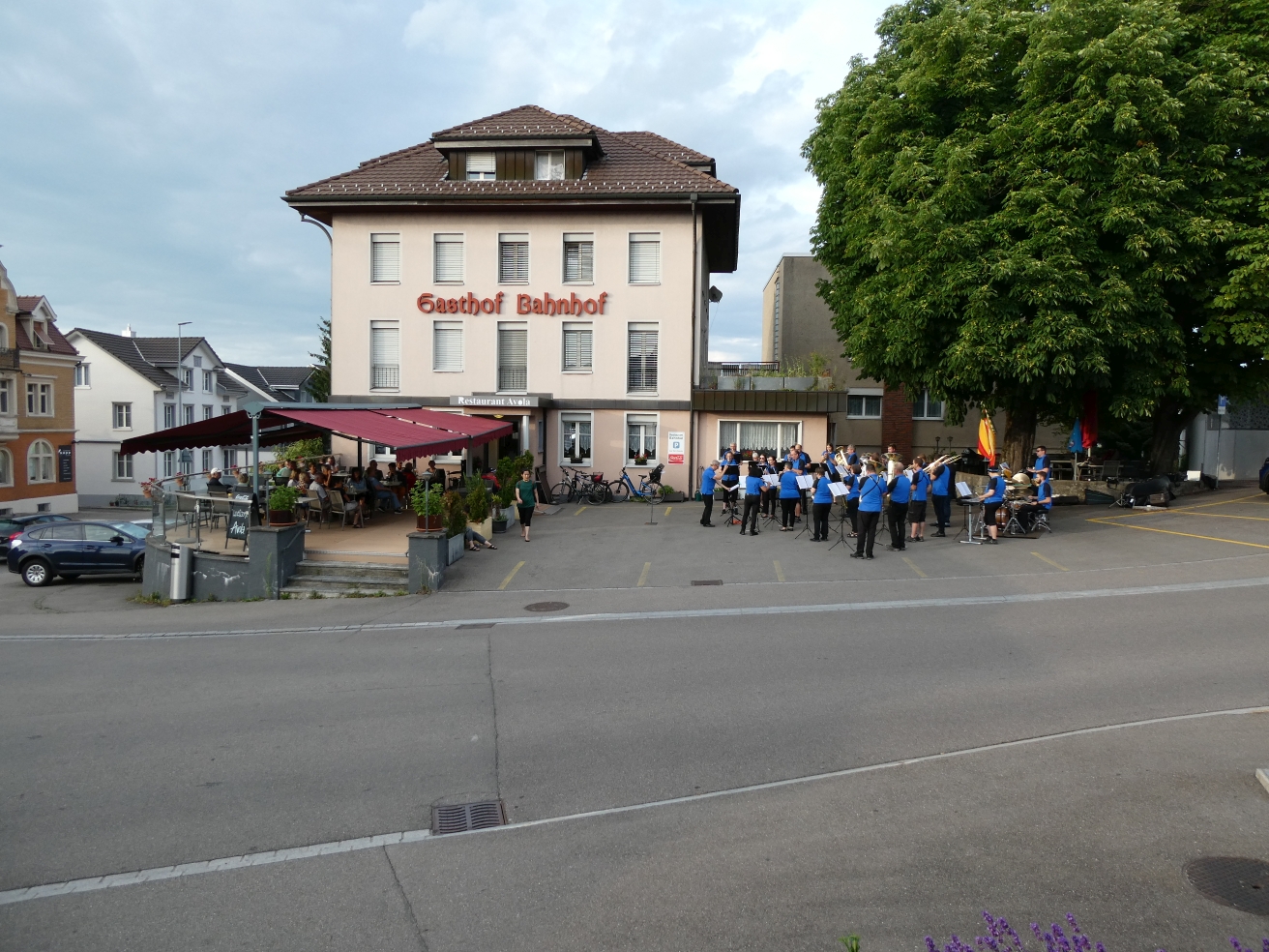 Die Musikantinnen und Musikanten gaben ihr erstes Platzkonzert beim Restaurant Engel. Schnell war die Gartenwirtschaft bis auf den letzten Platz besetzt. Gespielt wurde ein vielseitiges Konzertprogramm, das beim Publikum sehr gut ankam. Das zweite Platzkonzert fand im WAS in Sirnach statt und sorgte für eine willkommene Abwechslung. Das Programm bereitete den Bewohnerinnen und Bewohner viel Freude. Eine Woche später spielte die Musikgesellschaft Sirnach beim Restaurant Bahnhof (Avola) und verwöhnte die Gäste in der vollbesetzten Gartenwirtschaft mit musikalischen Leckerbissen. Das letzte Platzkonzert stellte zugleich das Warm Up dar für das traditionelle Dorffest in Wiezikon dar. Die Musikantinnen und Musikanten gaben noch einmal alles und sorgten für eine tolle Stimmung in der gut gefüllten Chnebelhütte. Bei bekannten Musiktiteln wurde gar gesungen und mitgeklatscht. Auch der Egger Hobbychor gab Ihre Lieder zum Besten. Das Publikum war vom vielseitigen Konzertprogramm sehr begeistert.