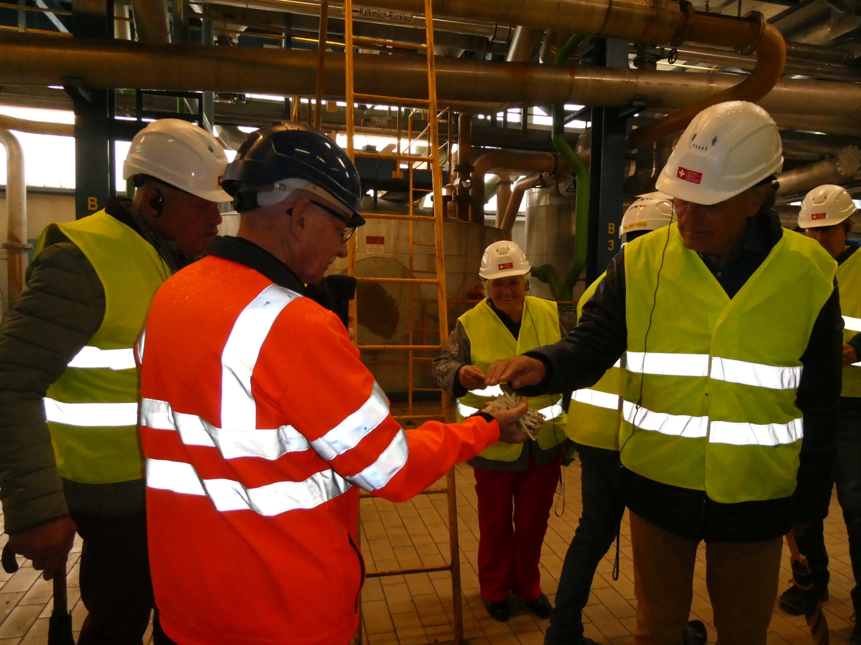 Die Mitglieder fuhren mit einem Bus nach Frauenfeld zur Zuckerfabrik. Bei der Führung durch die Anlagen wurde den Mitgliedern eindrücklich gezeigt, wie die Zuckerrüben verarbeitet und daraus der bekannte Schweizer Zucker hergestellt wird. Dabei spielt Nachhaltigkeit eine grosse Rolle. Die Tochtergesellschaft RICOTER Erdaufbereitung AG erzeugt aus den an den Rüben anhaftenden Erdresten hochwertige Recyclingprodukte. Pressschnitzel sowie Melasse werden für die Herstellung von Futtermittel verwendet. Nach einer Kaffeepause im Café Werk3 wurde die Firma Glatz AG angesteuert. Vor über 130 Jahren gegründet, gehört das Familienunternehmen zu einem der führenden Sonnenschirmhersteller weltweit. Entwickelt und produziert werden hochwertige Sonnenschirme für Unternehmen in der Gastronomie, aber auch für Privatkunden. Auf dem Hügel von Frauenfeld, im Restaurant Stählibuck, genossen die Ehrenmitglieder ein feines Nachtessen und liessen in gemütlicher Runde den Abend ausklingen.