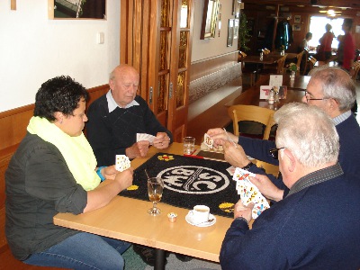 Im Berggasthaus erwartete die Ehrenmitglieder einfeines Mittagessen. Danach wurden Jass- und andere Spielkarten ausgepackt. Einige liessen sich vom strömenden Regen nicht abschrecken und besuchten das Wildkirchli. Am Nachmittag fuhr die Reisegesellschaft nach Gossau, wo einweiteres Ehrenmitglied zur Gruppe stiess. Im Restaurant Freihof erlebten die Männer und Frauen eine spannende und lehrreiche Führung durch die Welt des Bierbrauens. Beim anschliessenden Abendessen wurde weiterhin viel erzählt undgelacht. Schon bald reisten einige Ehrenmitglieder müde, aber zufrieden zurücknach Sirnach. Die Zurückgebliebenen liessen in der hauseigenen Bar den Abendausklingen.